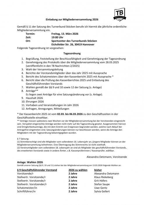 Einladung zur Mitgliederversammlung 13.02.2026