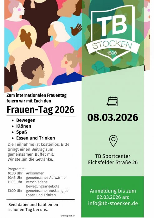 Hiermit laden wir alle Frauen (Mitglieder und Nichtmitglieder) ein, mit uns am 08.03. den Frauen-Tag zu feiern. Wir wollen uns gemeinsam bewegen, Spaß haben, klönen, essen,... [...hier geht es zum Flyer]
